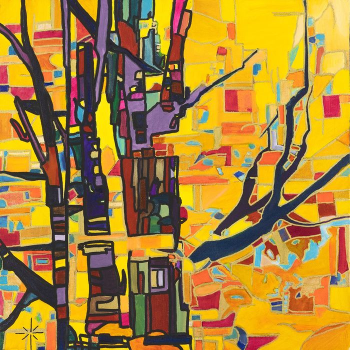 Klimtish Trees, 20x20 acrylic, new in my art work shop here and at Pittsford!